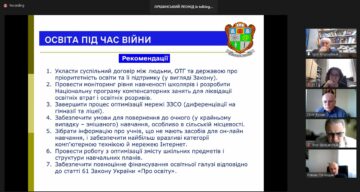 “Освіта під час війни: освітні втрати і рекомендації” (доповідач – завідувач кафедри технологічної та професійної освіти Дрогобицького університету, доктор педагогічних наук, професор Леонід Оршанський);
