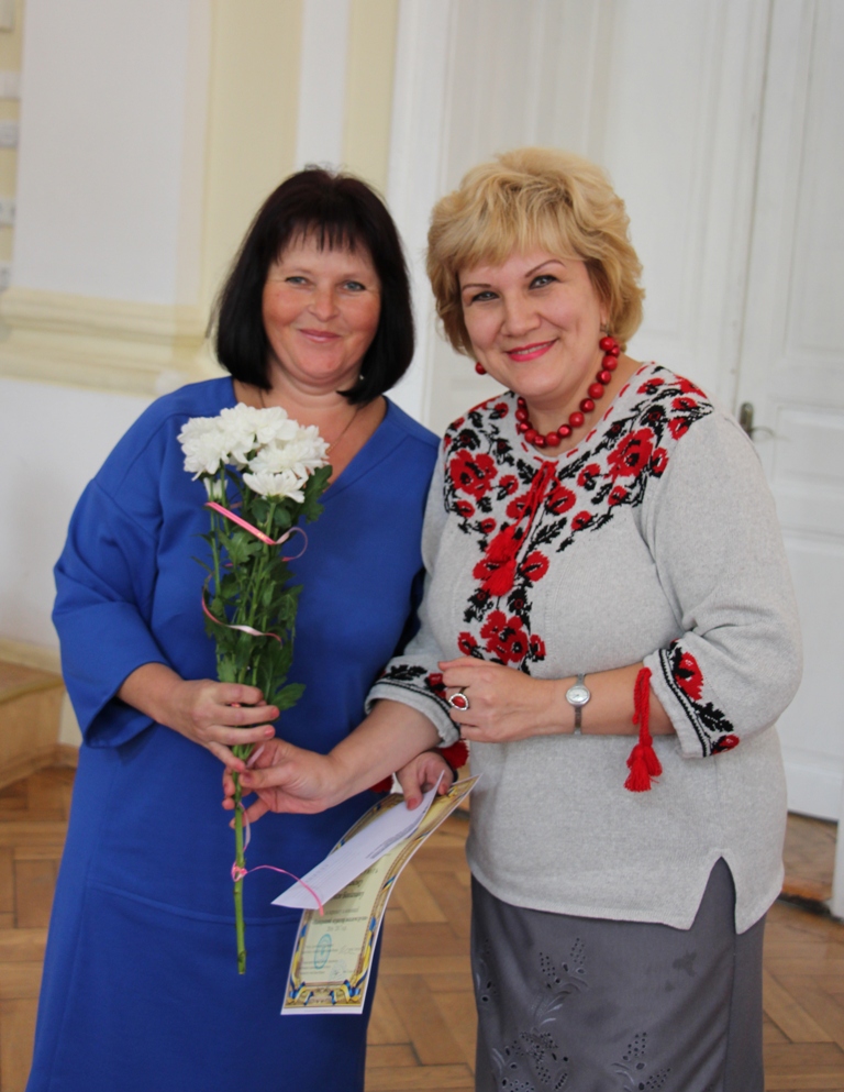 - Голова профкому доцент Олена Куцик вітає найкращого куратора академгрупи (2016-2017 н.р.) ст. викладача Лесю Баранську