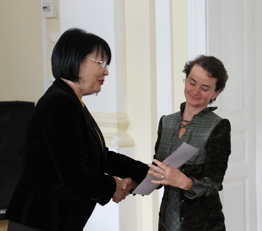 - Голова профкому доцент Олена Куцик вітає найкращого керівника студентської наукової роботи (2016-2017 н.р.) доцента Марію Стецик