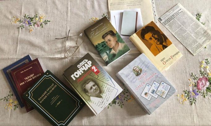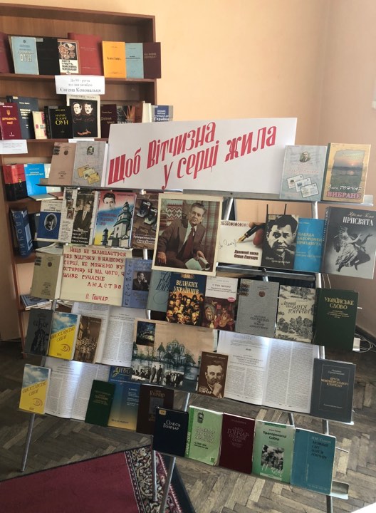 На завершення відбулася презентація виставки “Щоб Вітчизна у серці жила”, де були представлені твори і життєпис О. Гончара.