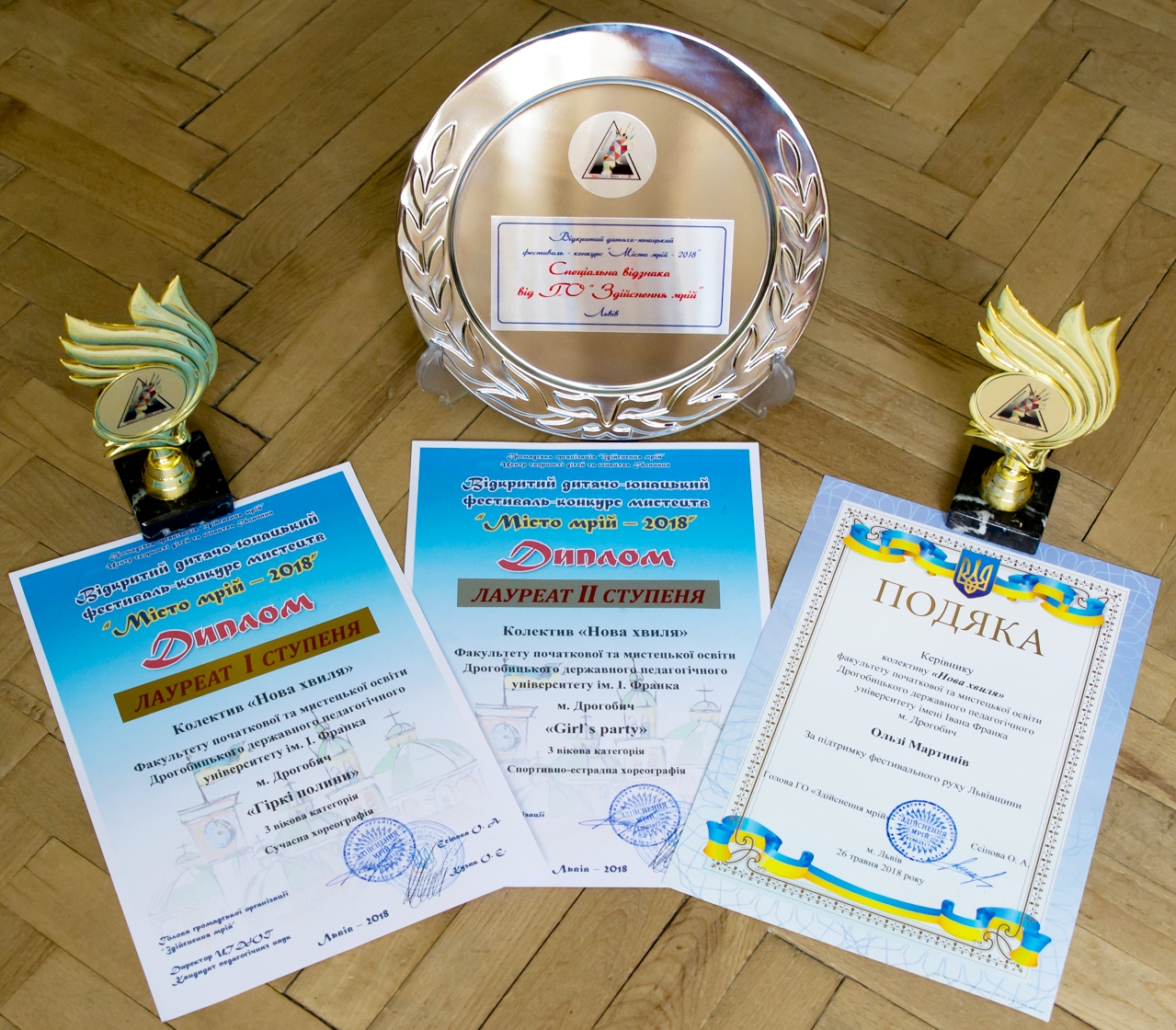 26 травня 2018 року у м. Львів відбувся Відкритий дитячо-юнацький фестиваль-конкурс мистецтв «Місто мрій – 2018», в якому ансамбль танцю факультету початкової та мистецької освіти «Нова хвиля» (керівник – Ольга Мартинів) дебютував на конкурсній сцені і став лауреатом І ступеня у 3 віковій категорії в номінації «Сучасна хореографія» (постановка «Гіркі полини») і ІІ ступеня у тій же ж категорії в номінації «Спортивно-естрадна хореографія» (постановка «Girl’sparty»), а також був відзначений спеціальною нагородою ГО «Здійснення мрій».
