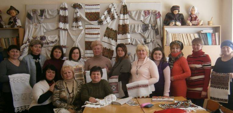 - Керівник лабораторії Надія Кузан ознайомлює з орнаментикою та колористикою рушників