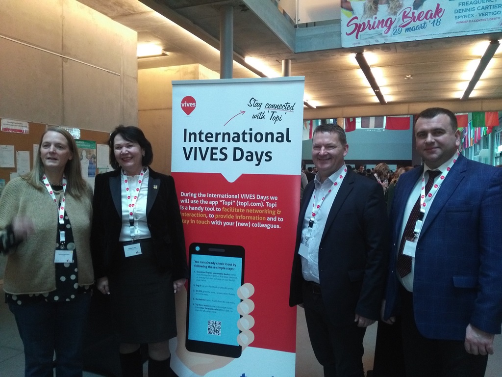 31 січня – 2 лютого 2018 року делегація нашого університету на чолі із ректором професором Надією Скотною у складі декана біолого-природничого факультету доцента Світлани Волошанської, декана соціально-гуманітарного факультету доцента Ігоря Гриника та проректора з науково-педагогічної роботи доцента Юрія Вовка перебувала із робочим візитом в Університеті прикладних наук VIVES (місто Брюгге, Бельгія).