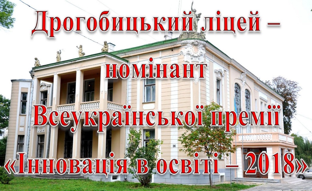 Дрогобицький ліцей номіновано на Всеукраїнську премію «Інновація в освіті – 2018» в номінації «Кращий загальноосвітній навчальний заклад, що застосовує інноваційні методи в освіті».