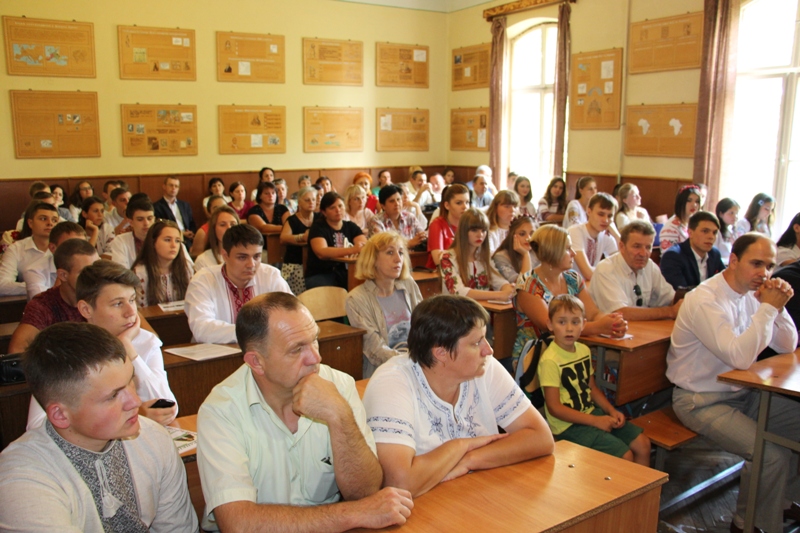 З вітальним словом виступив декан факультету професор Леонід Тимошенко, в якому коротко висвітлив історію факультету та ознайомив першокурсників з структурними підрозділами факультету.