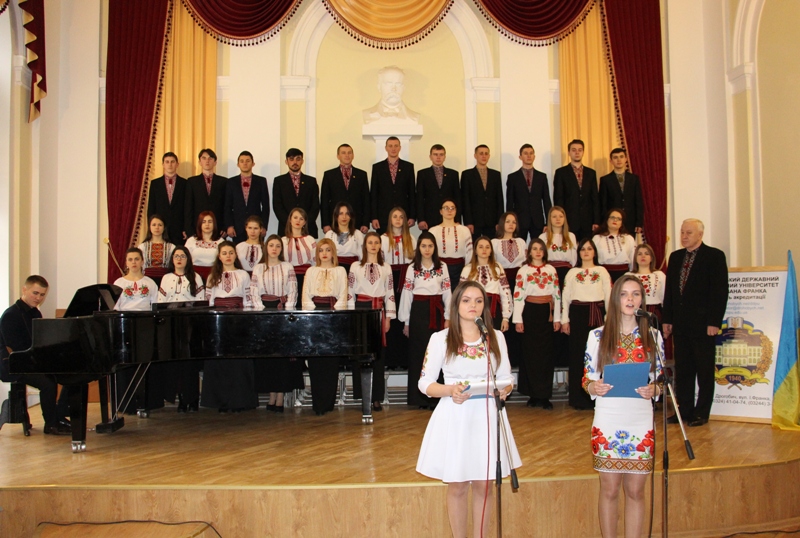 Розпочався захід музичними творами «Реве та стогне Дніпр широкий», «Сонце заходить», «Садок вишневий коло хати» у виконанні студентської хорової капели «Gaudeamus» (художній керівник – професор Степан Дацюк, концертмейстер – Роман Хрипун). На заході виступили: студенти інституту музичного мистецтва Василь Шуневич та Софія Розтоцька, народний ансамбль бандуристок (художній керівник – Стефанія Пінчак), викладач Андрій Боженський, доцент Ірина Кліш, студенти філологічного факультету Каріна Шестак, Христина Грабовська, Галина Скольська та Лілія Дронь, переможець загальноуніверситетського конкурсу читців поезії Тараса Шевченка студентка інституту іноземних мов Катерина Малиш, призер цього ж конкурсу студентка факультету початкової та мистецької освіти Ірина Мотиль, чоловічий камерний хор «Боян Дрогобицький» (художній керівник – професор Петро Гушоватий). Концертмейстери: Наталія Сторонська, Тамара Козій, Наталія Дзондза, доцент Олександра Німилович.