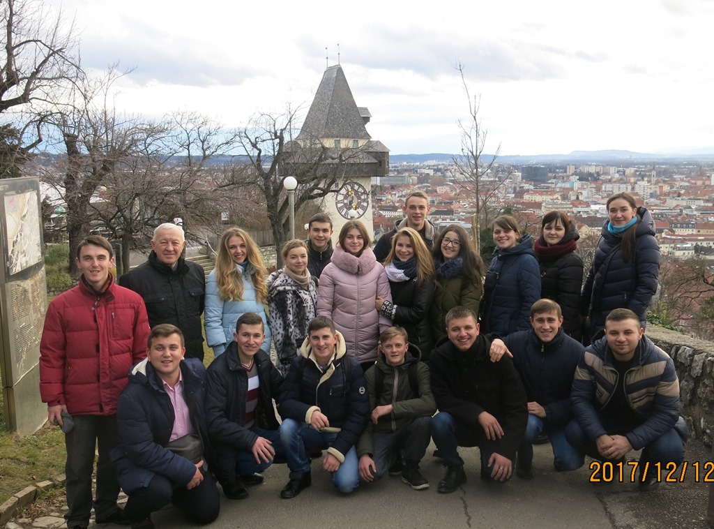 Цікавими та пізнавальними виявилися екскурсії по центральній частині Ґрацу, в музеї старовинної зброї, особливо теплою стала зустріч із Оксаною Линів, нашою землячкою, яка зараз обіймає посаду головного диригента в оперному театрі Ґрацу. Надовго збережуться у пам’яті студентів надзвичайна краса зимового Відня, піднесені натхненні почуття від чудового виступу в урочистій залі Віденської ратуші перед чисельною вишуканою австрійською публікою. Повертаючись додому, члени делегації помилувалися видами столиці Угорщини Будапешта з замкової гори.