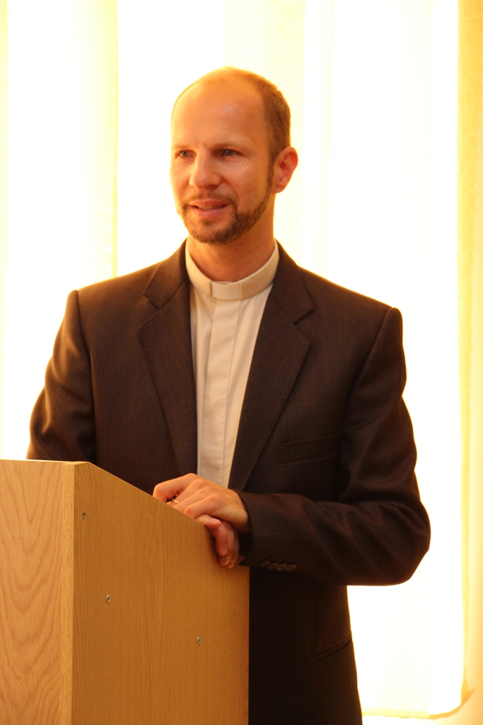 - Вітає учасників конференції капелан університету о. Олег Кекош