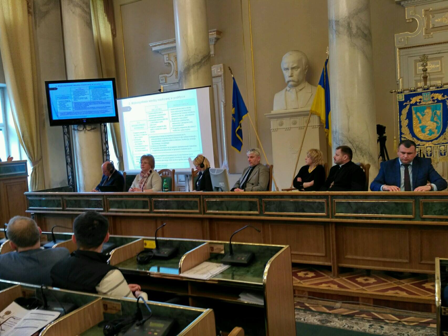 - Пленарне засідання конференції у сесійній залі Львівської обласної ради – проф. Роман Корж, проф. Світлана Щудло, Тетяна Медвідь, д-р Криштоф Бжуска, Дзвінка Чайківська, о.Ігор Козанкевич