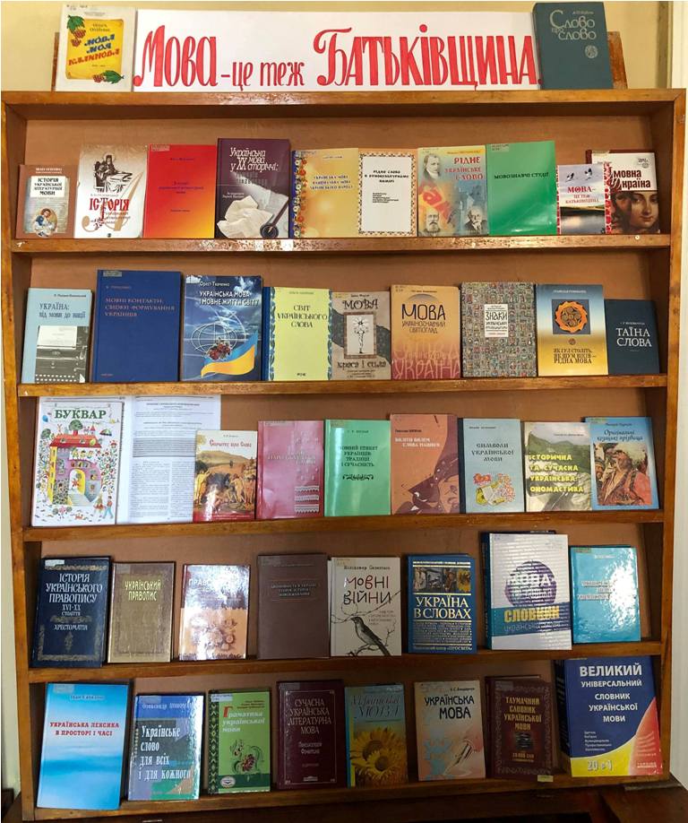 Бібліотека також долучилася до цього свята і підготувала в читальному залі № 1 для студентів та викладачів підбірку нових підручників, монографій та словників з української мови. Серед них: Великий універсальний словник української мови, Тлумачний словник української мови (за редакцією В.В. Дубічинського), Мовознавчий словник-довідник «Україна в словах»; монографії Я. Радевича-Винницького «Двомовність в Україні: теорія, історія, мово вживання», «Україна: від мови до нації», Р. Зорівчак «Боліти болем слова нашого…», дослідження орфографічних проблем сучасного мовознавства Ірини Фаріон «Правопис – корсет мови?» та інші книги.
