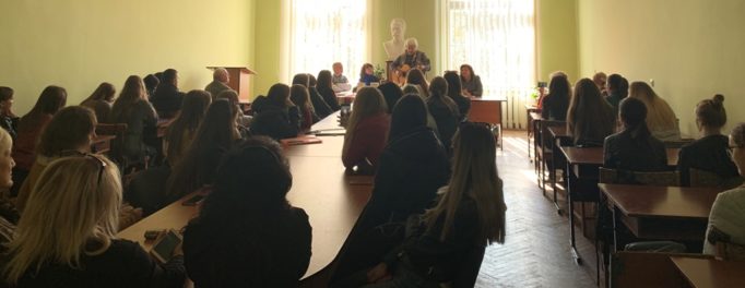 18 жовтня 2019 р. студенти-філологи мали чудову нагоду поспілкуватися із унікальним творчим подружжям. Це – Ірен Роздобудько, «золота» письменниця України, лауреат Шевченківської премії, кіносценаристка, громадська діячка, авторка книг, що вже стали бестселерами («Зів`ялі квіти викидають», «Арсен», «Якби», «Ранковий прибиральник», «Тут і тепер», «Волонтери»), та її чоловік Ігор Жук – поет-бард, сценарист, учений-астрофізик.