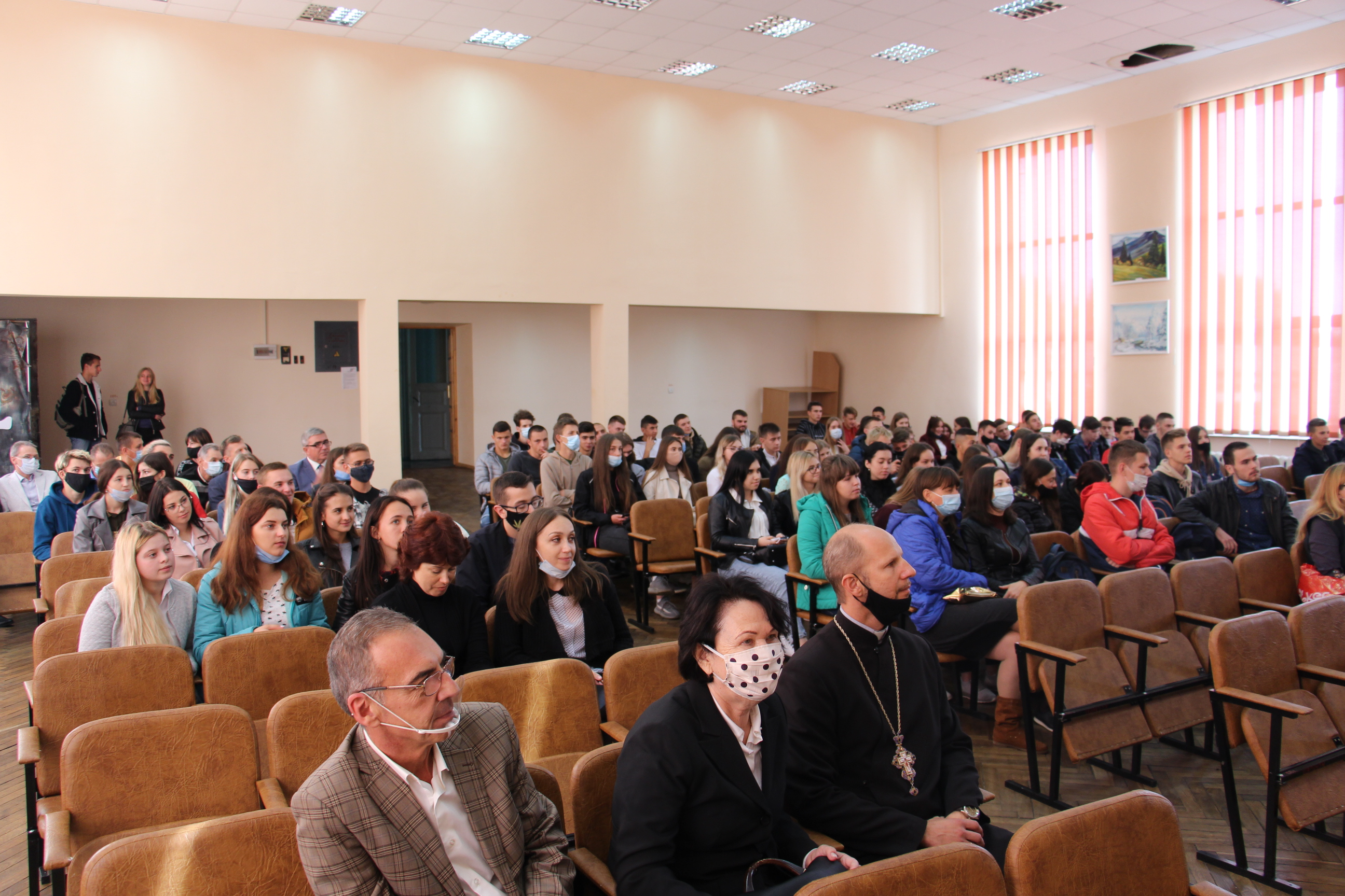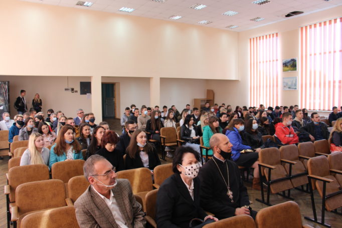 - Студентів інституту іноземних мов вітає ректор Надія Скотна та отець Олег Кекош
