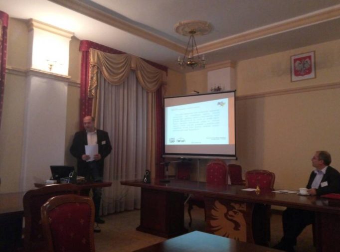 - У сенатській залі Державної вищої професійної школи ім. Яна Ґродка у Саноку (зліва направо): Віра Меньок, Павло Скотний, Оксана Рибак – докторантка Львівського національного університету ім. Івана Франка
