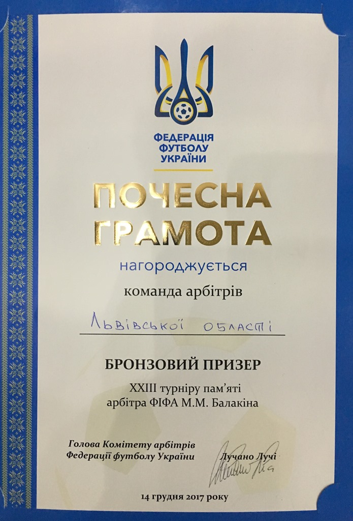 Збірна Львівської області у важкій і напруженій боротьбі здобула бронзові нагороди турніру. Цьогоріч знані очільники арбітражу Львівщини Андрій Шандор та Юрій Можаровський до збірної запросили представників Дрогобицького державного педагогічного університету імені Івана Франка доцента кафедри спортивних дисциплін і туризму Романа Проця (спостерігач матчів Екстра-ліги України) та його вихованця студента ІV курсу інституту фізичної культури і здоров’я Ореста Дуцяка (арбітр Екстра-ліги з футзалу).