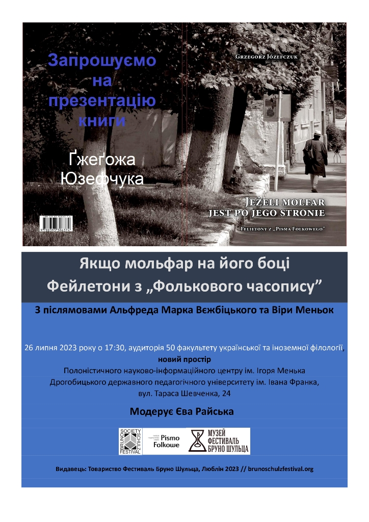 26 липня 2023 року у новому просторі Полоністичного науково-інформаційного центру імені Ігоря Менька (факультет української та іноземної філології, аудиторія 50) відбулася презентація книги «Якщо мольфар на його боці» доктора honoris causa Дрогобицького державного педагогічного університету імені Івана Франка Ґжеґожа Юзефчука – філософа, мистецького та театрального критика, дослідника культури й літератури, журналіста, публіциста, есеїста та фейлетоніста, голови Товариства Фестиваль Бруно Шульца (Люблін), співорганізатора та художнього директора Міжнародного Фестивалю Бруно Шульца у Дрогобичі, багатолітнього партнера нашого університету та приятеля нашого міста.
