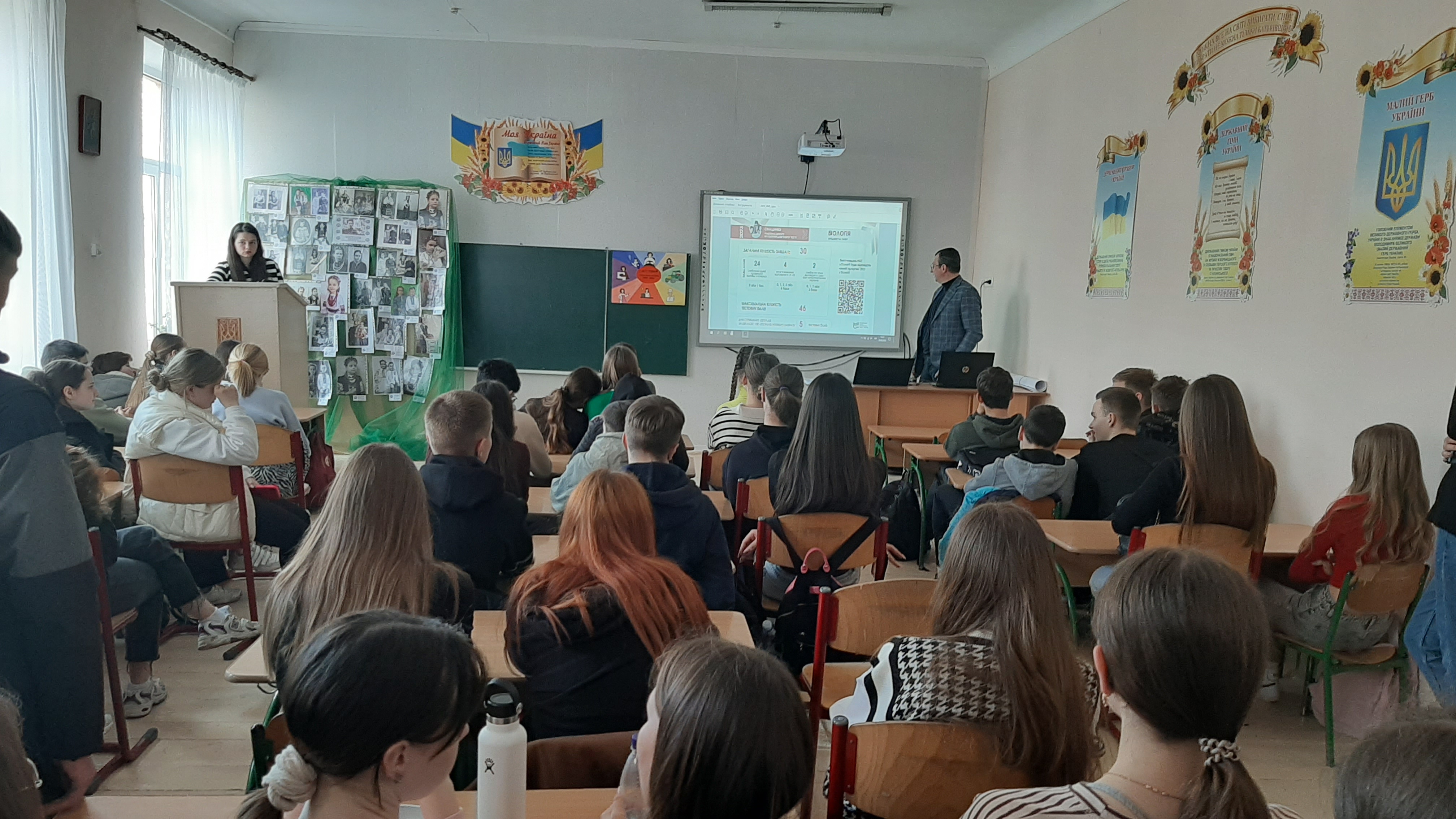 Віталій ФІЛЬ ознайомив здобувачів закладу з сайтом УЦОЯО, де акцентував увагу на те, як реєструватися на НМТ, термінах реєстрації та сесій.
