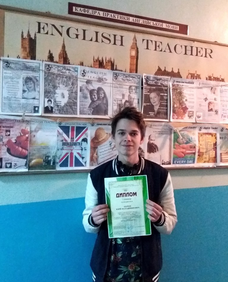 Щиро вітаємо переможця і його наукового керівника – завідувача кафедри практики англійської мови, доцента Ірину Сирко й зичимо подальших творчих успіхів!