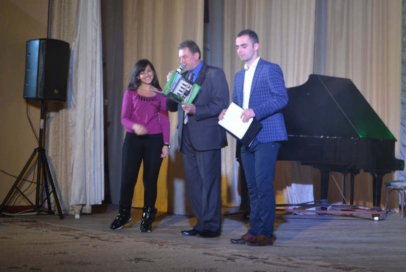 - Під час виступу команди КВН „ФІФА” (факультет фізичного виховання). На фото зліва направо: С. Вікоброда, В. Сидорчук, Р. Данчівський