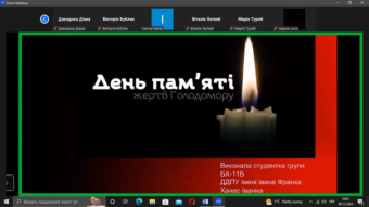 Студенти підготували цікаві доповіді у формі презентацій: Вікторія Бублик «Голодомор в Україні (1932–1933 рр.): загальні аспекти»; Тетяна Чапля «Психологічні наслідки голодомору 1932–33 рр. в Україні»; Діана Давидова «Голодомор і його наслідки та вплив на здоров’я і життя людей»; Іванна Ханас «День пам’яті жертв Голодомору»; Віталій Легкий «Голодомор в Україні 1932–1933 рр.: юридичні аспекти»; Марія Туряб «Запровадження натуральних штрафів, чорних дощок, блокада УРСР»; Юлія Пидляк «Голодомор 1932–1933 років в Україні: демографічні втрати».