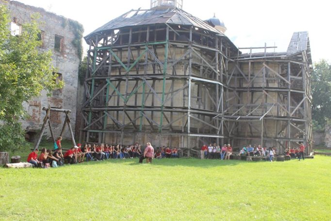 Піднявшись на вершину Лисоні, ліцеїсти зібралися на урочисту лінійку. Зі словами вітань до присутніх звернулися капелан ліцею о. Денис та директор Ольга Заяць. З цієї нагоди учні підготували тематичний виступ.