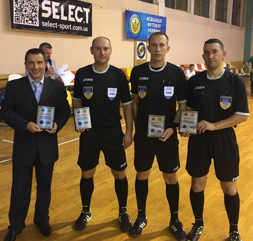 - Бригада арбітрів матчу за Суперкубок України -2017 (зліва направо): доцент Роман Проць,Геннадій Гора, Євген Гордієнко та Павло Кравцов