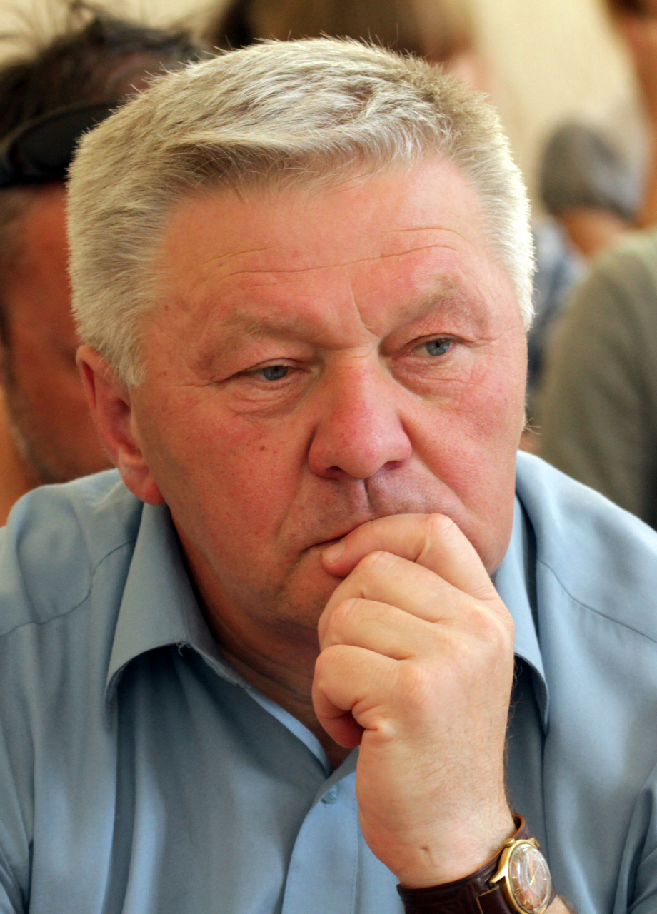 Адам Хлопек під час конференції «Багатокультурність міжвоєнного Дрогобича у контексті історії Центрально-Східної Європи», V Міжнародний Фестиваль Бруно Шульца у Дрогобичі, історичний факультет, 11 вересня 2012. Світлина Ігоря Фецяка.