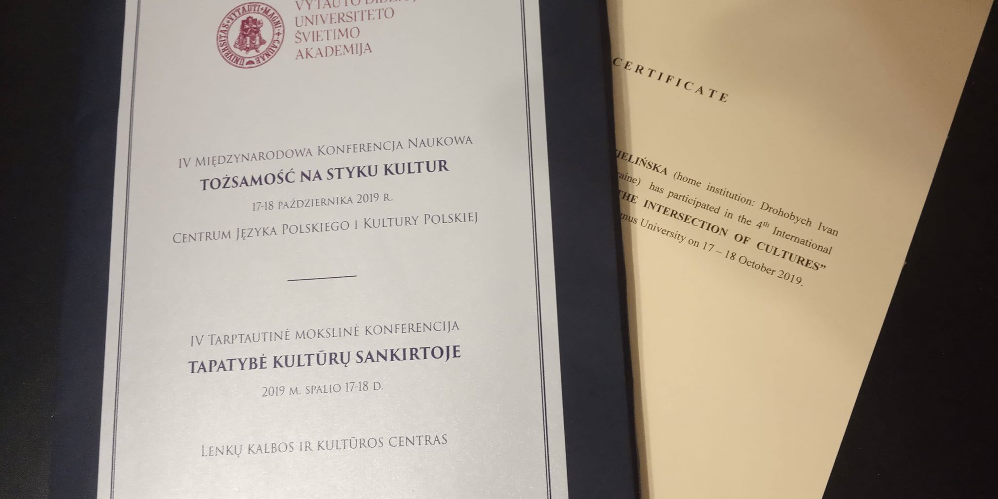 17 – 18 жовтня 2019 року старший викладач кафедри світової літератури та славістики Марія Зелінська взяла участь у IV Міжнародній науковій конференції, присвяченій проблемам ідентичності на пограниччі культур „Tożsamość na styku kultur”, де представила результати досліджень (спільно з доцентом Кінґою Ґебен з Вільнюського університету) багатомовності молоді в Україні та Литві з урахуванням соціолінгвістичного та лінгвістичного аспектів („Wielojęzyczność młodzieży na Ukrainie i Litwie: aspekt socjolingwistyczny i językowy”).