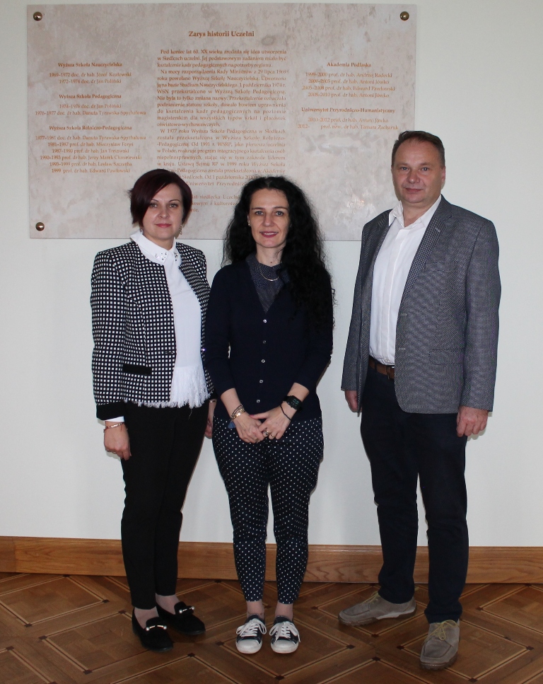 Під час стажування були проведені зустрічі із директором Інституту соціальних наук та безпеки професором Мариушом Кубяком, деканом факультету професором Яцеком Зелінським та професором Беатою Валенчук-Дайнекою, де було обговорено питання подальшої співпраці, участі у видавничих проектах, публікації статей.