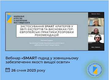 Під час роботи вебінару були представлені доповіді: «Європейські практики розробки рекомендацій застосування SMART-технологій», «SMART-підхід у рекомендаціях експертних груп: проблеми та перспективи», «Формулювання рекомендацій для ЗВО: нестандартні кейси».