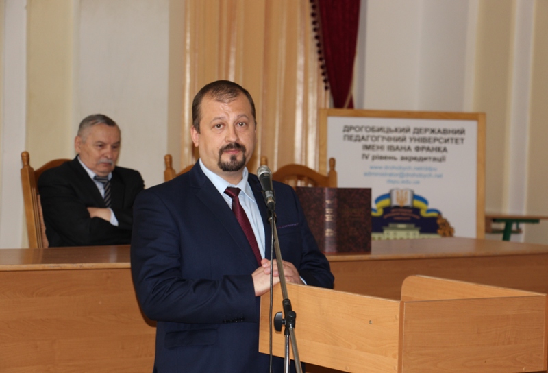 - Учасників святкової академї вітає заступник міського голови Дрогобича Василь Качмар