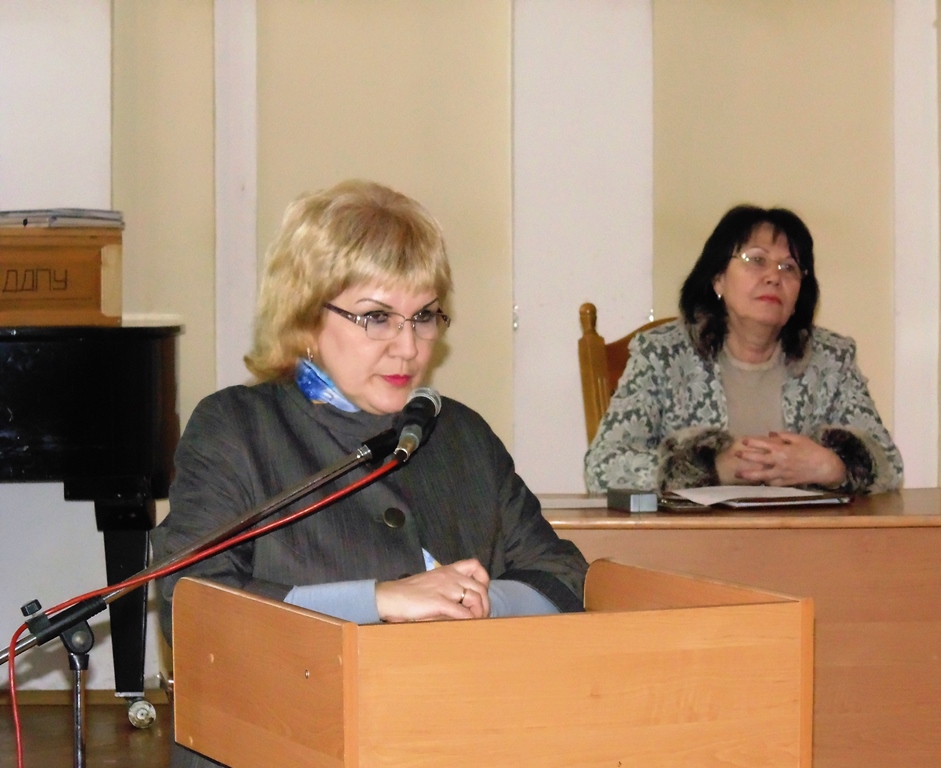 - За трибуною голова комісії профкому з охорони праці і техніки безпеки доцент Галина Ковальчук