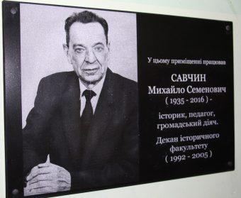 21 листопада 2016 року на історичному факультеті відбулося урочисте відкриття пам’ятної дошки декану історичного факультету (1992 – 2005), історикові, педагогу, громадському діячеві Михайлу Савчину. Слово на пошану пам’яті виголосили ректор професор Надія Скотна, декан історичного факультету професор Леонід Тимошенко, директор Центру перепідготовки та післядипломної освіти доцент Петро Фещенко та завідувач кафедри нової та новітньої історії України професор Василь Футала.