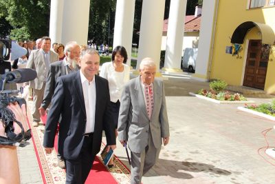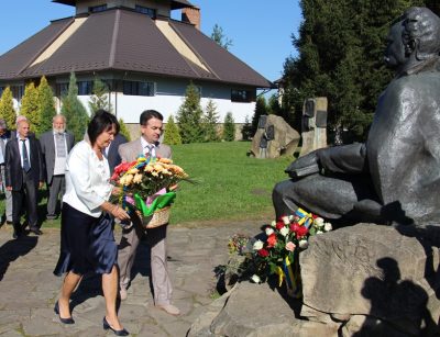 - Керівництво Дрогобицького університету та академік Микола Мушинка на батьківщині Каменяра.