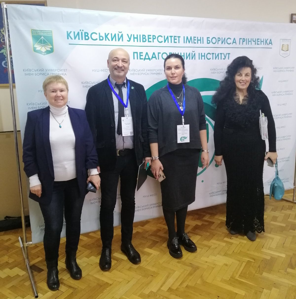 - Зліва направо: доцент кафедри початкової освіти Педагогічного інституту Київського університету ім. Б. Грінченка Олена Ващенко, завідувач кафедри початкової освіти Педагогічного інституту Київського університету ім. Б. Грінченка Геннадій Бондаренко, директор Педагогічного інституту Київського університету ім. Б. Грінченка Ольга Котенко, завідувач кафедри педагогіки та методики початкової освіти Дрогобицького державного педагогічного університету ім. І. Франка Лілія Стахів