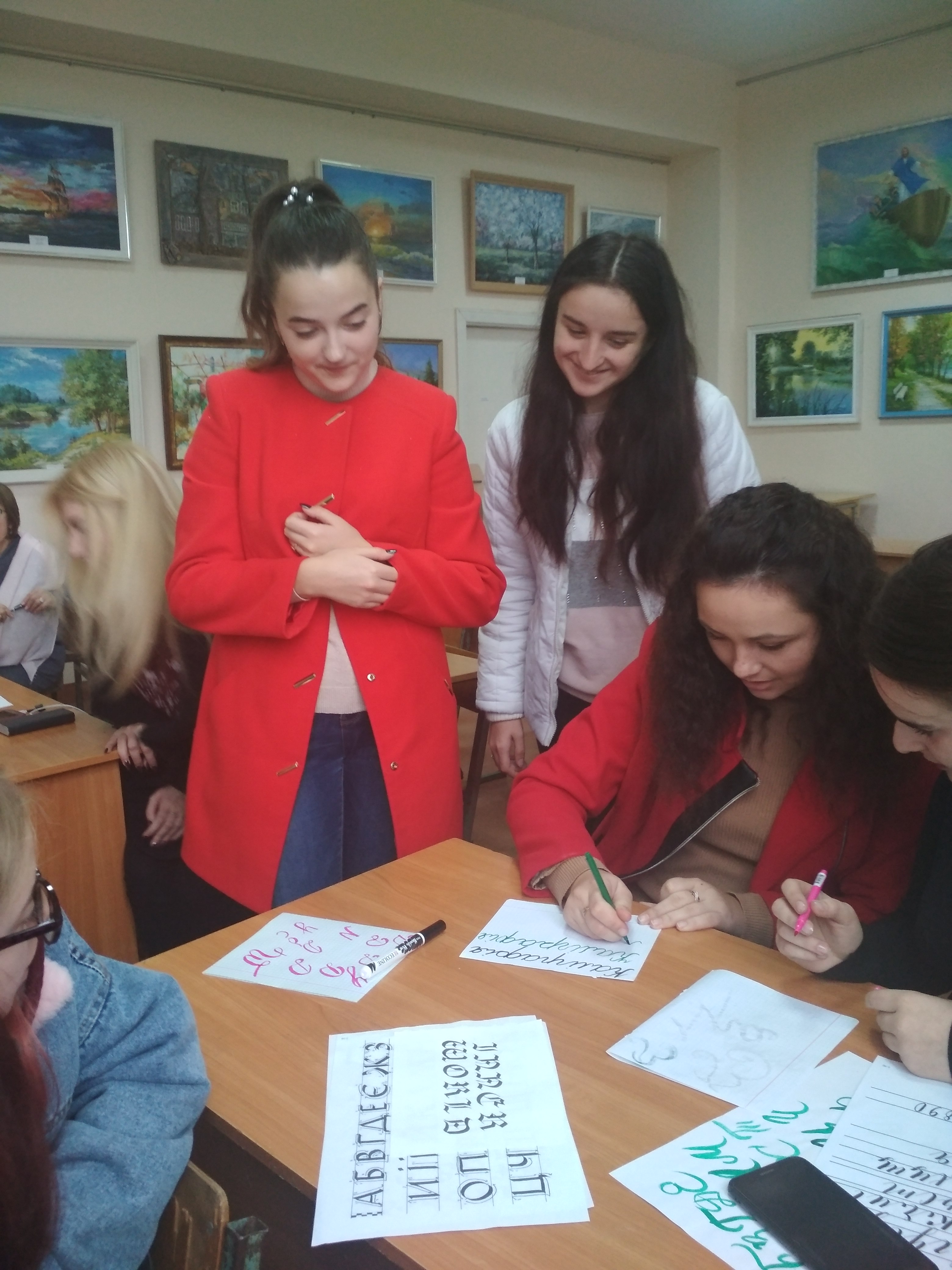 Гостя під час лекції з курсу «Каліграфія» поділилася своїм досвідом роботи у клубі «Дзиґа» міста Трускавець з дітками дошкільного та молодшого шкільного віку, де веде заняття з каліграфії, ментальної арифметики, сторітелінгу. Вона цікаво розповідала студентам про каліграфію як мистецтво, торкнулася історії виникнення найпоширеніших шрифтів та їх відмінностей. Студенти з великою цікавістю слухали Ольгу Ісупову про можливості застосування каліграфічної практики у різноманітних галузях. Також учасники зустрічі спробували себе у ролі каліграфів, прописуючи різноманітні літери та їх елементи.
