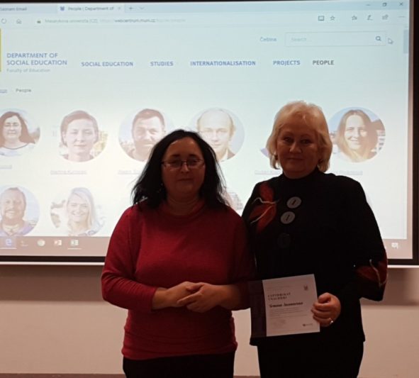 12 – 17 листопада 2018 року в університеті імені Т.Г. Масарика (м. Брно, Чеська республіка) проходив науковий семінар «Відкритий університет. Процеси інклюзії в університетському середовищі» у межах міжнародного проекту «Прогресивне управління університетом», в якому взяла участь завідувач кафедри соціальної педагогіки та корекційної освіти нашого університету проф. Т. Логвиненко. Метою цього зібрання було ознайомлення з досвідом університету імені Т.Г. Масарика і, зокрема, кафедри соціальної педагогіки зі створення інклюзивного освітнього середовища для студентів з особливими освітніми потребами, який представляла завідувач кафедри доктор Лєнка Гулова.