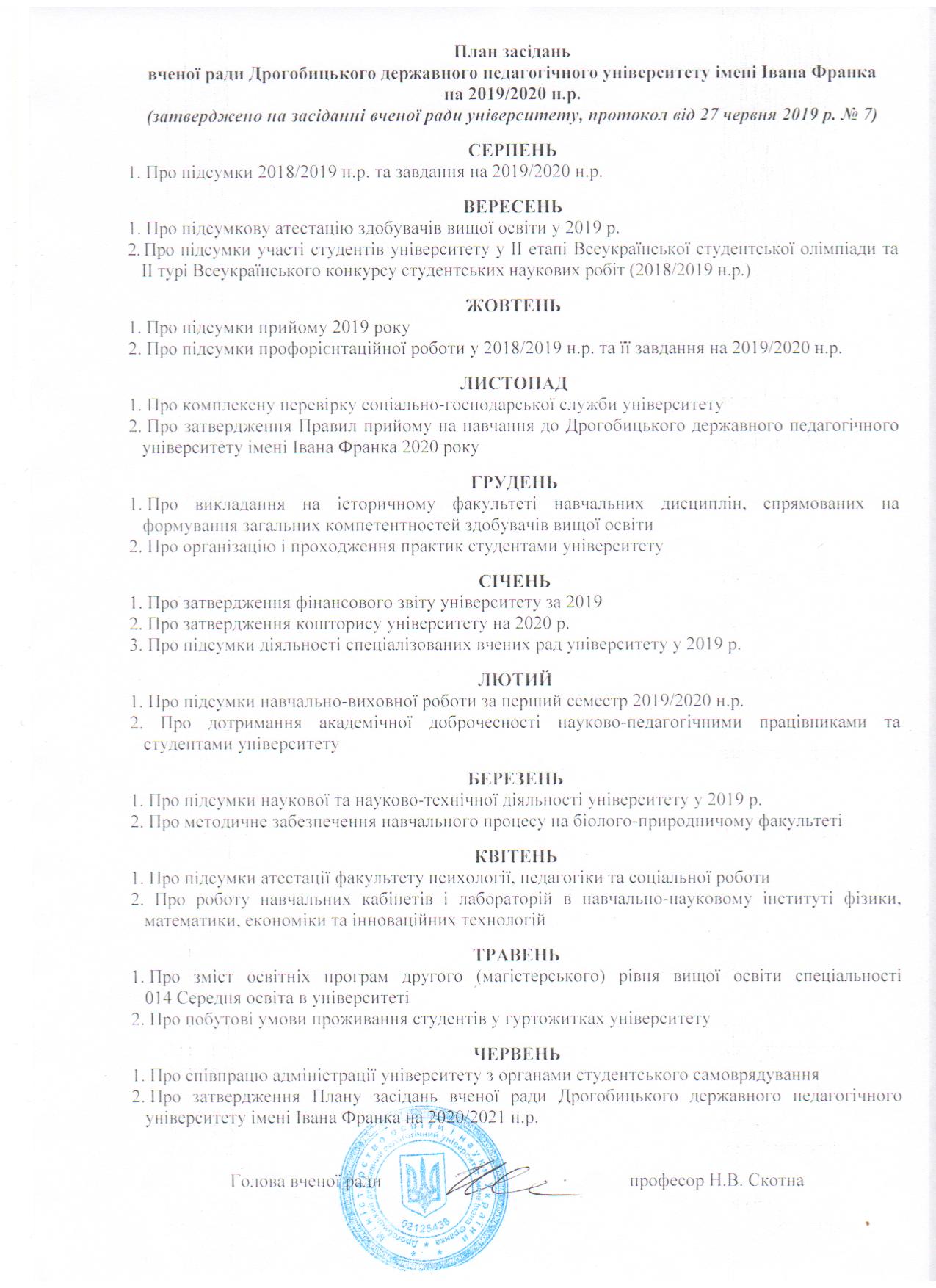 - План засідань вченої ради університету на 2019/2020 н.р.